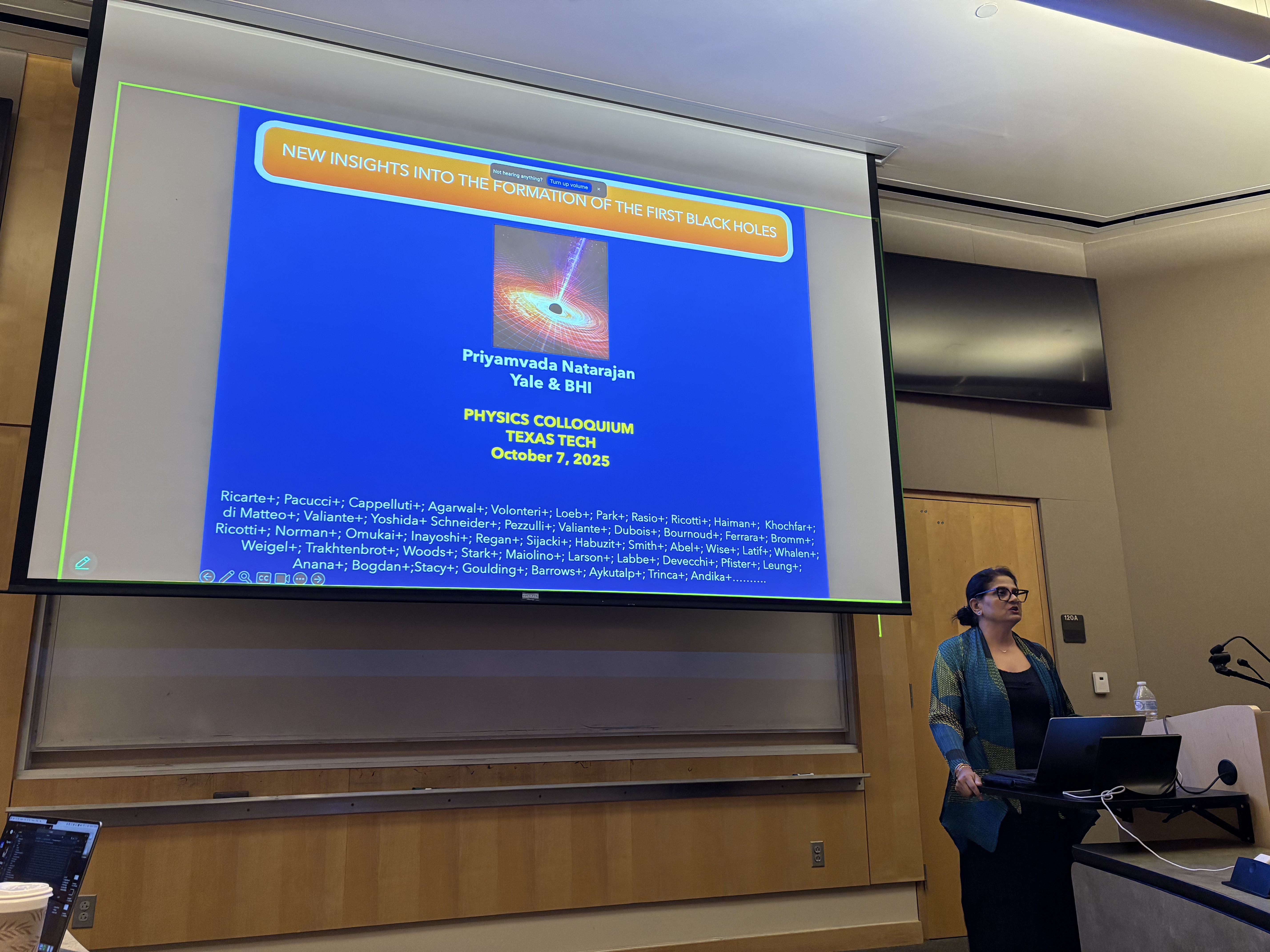 Priyamvada Natarajan is an astrophysicist, and the inaugural Joseph S. and Sophia S. Fruton Professor in Astronomy & Physics at Yale and an external PI at Harvard's Black Hole Initiative. She has made seminal contributions to our understanding of the nature of dark matter using gravitational lensing studies; and the assembly history of supermassive black holes over cosmic time. The recipient of many awards and honors, including fellowships of the American Physical Society; American Astronomical Society; the American Academy of Arts and Sciences; the American Association for the Advancement of Science; the Guggenheim and Radcliffe Fellowships, she was recognized with the 2022 Liberty Science Center ‘Genius Award’ and 2025 Dannie Heineman Prize in Astrophysics that is jointly awarded by the American Astronomical Society and American Institute of Physics. She was included in the TIME100 list of most influential people in the world in 2024 for her path breaking contributions to Astrophysics. Priya has served as Chair of the National Astronomy and Astrophysics Advisory Committee that advises NASA, NSF and DoE; as Chair of the Division of Astrophysics of the APS and currently serves on the Scientific Editorial Board of the AAS Journals. On the faculty at Yale, since 2000, she serves currently as the Director of the Franke Program in Science and the Humanities and was the Chair of the Women Faculty Forum from 2011-2014.